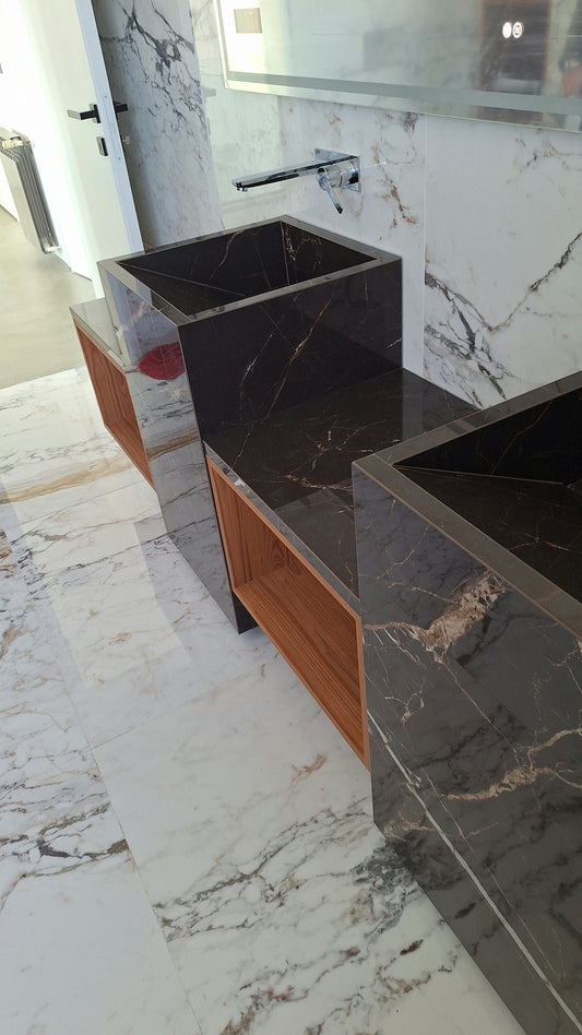 Lavatório em porcelanato marmore branco 60x40x25cm