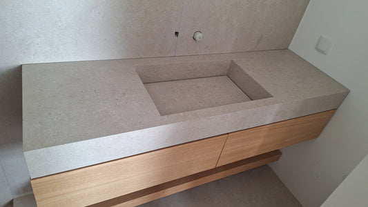 Lavatório em porcelanato cinza claro 150x50x15cm